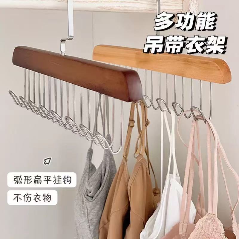 【下单立减50】实木吊带衣架多功能家用收纳内衣背心8勾波浪挂钩