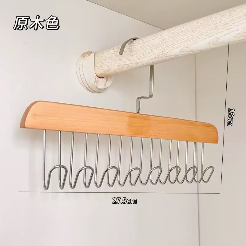 【下单立减50】实木吊带衣架多功能家用收纳内衣背心8勾波浪挂钩 - 半夏精选
