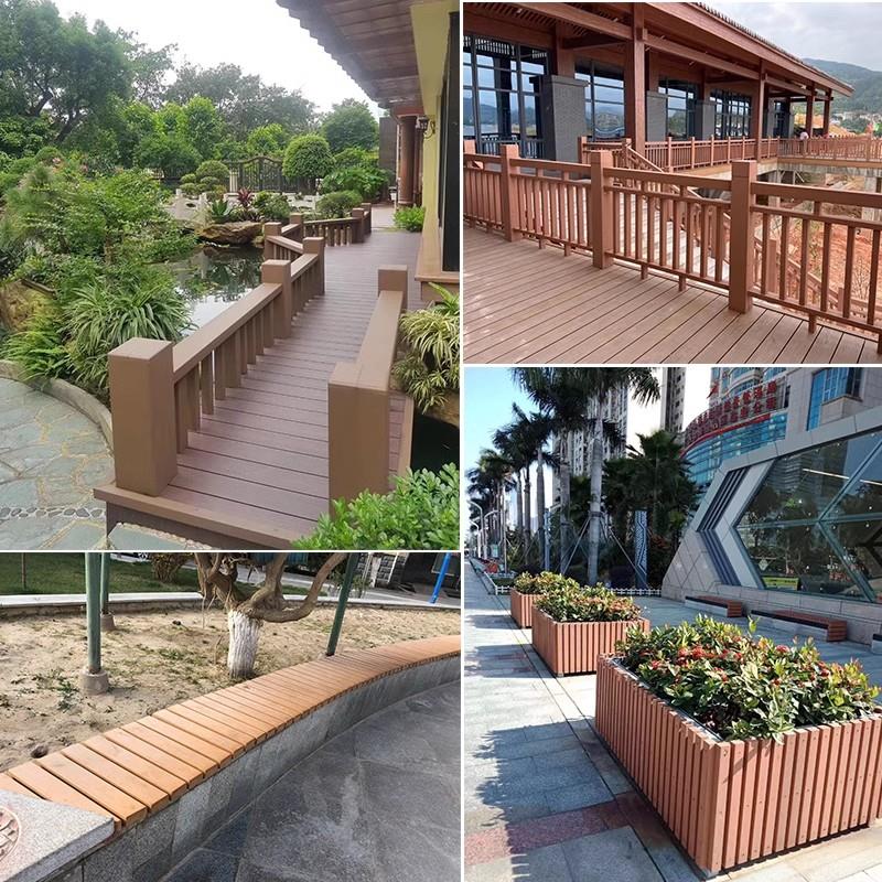公园景区塑木护栏河道扶手木塑栏杆户外塑木栈道庭院防腐木围栏厂 - 万昌五金百货商城