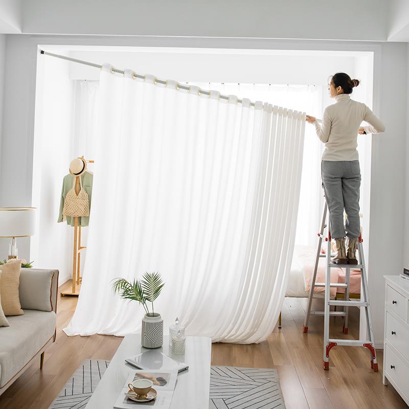纱帘窗帘免打孔安装隔断窗伸缩杆门帘白色百叶窗纱白纱简易遮挡帘 - 珺乐光楹鲤专卖店