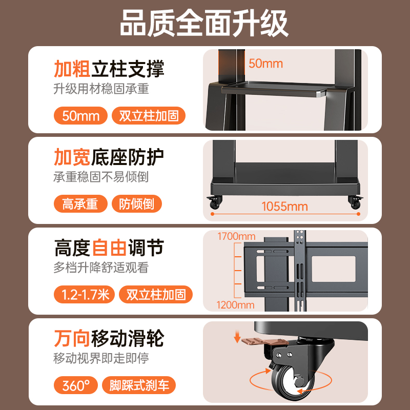 您的位置:他他商城  >   >  电视机可移动型支架子落地式带轮推车适用于创维海信等一体机挂架