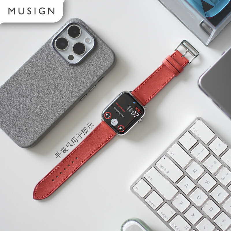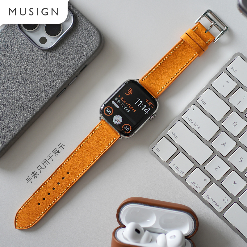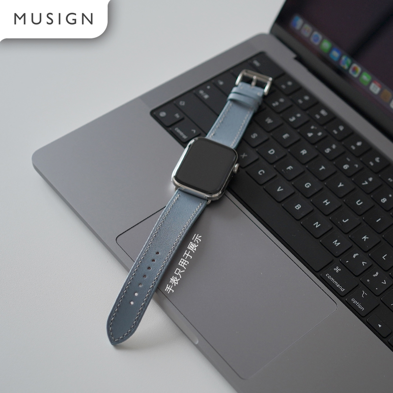 您的位置:他他商城  >   >  纯手工阿慕良品原装牛皮APPLEWATCH S7 45mm高品质亚麻蓝表带时尚