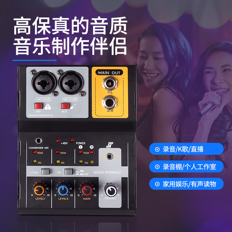 您的位置:他他商城  >  电器  >  多功能迷你2路高保真调音台电脑录音直播USB外置声卡免驱动混音器