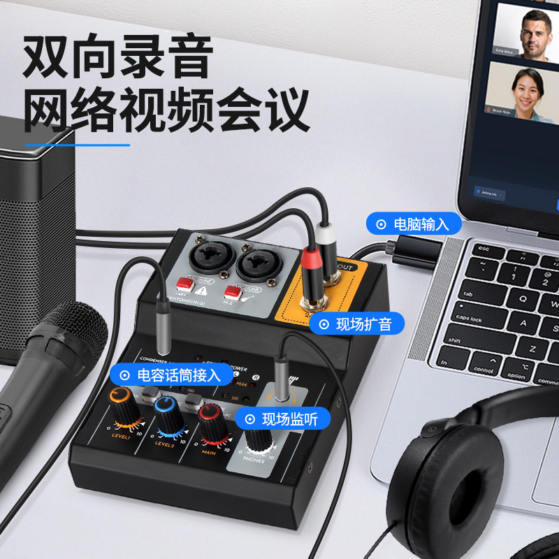 多功能迷你2路高保真调音台电脑录音直播USB外置声卡免驱动混音器