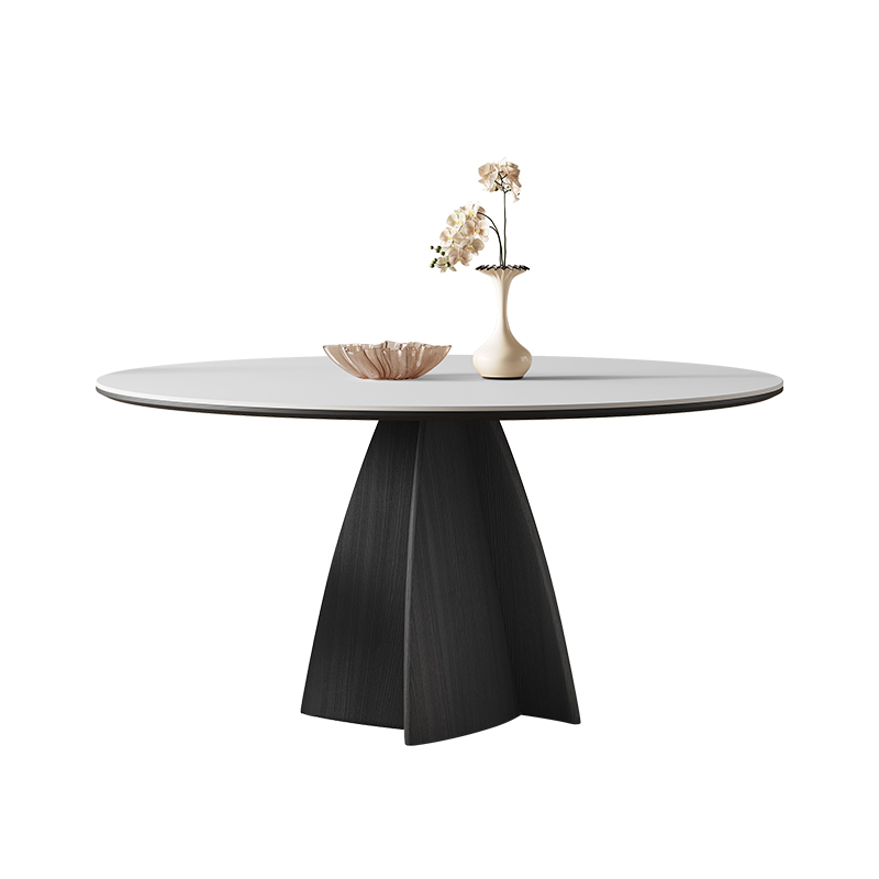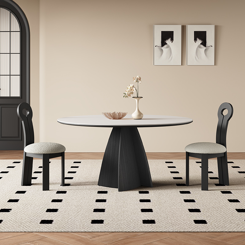 您的位置:他他商城  >   >  法式实木餐桌家用黑色圆形带转盘意式现代简约纯白X复古岩板圆桌