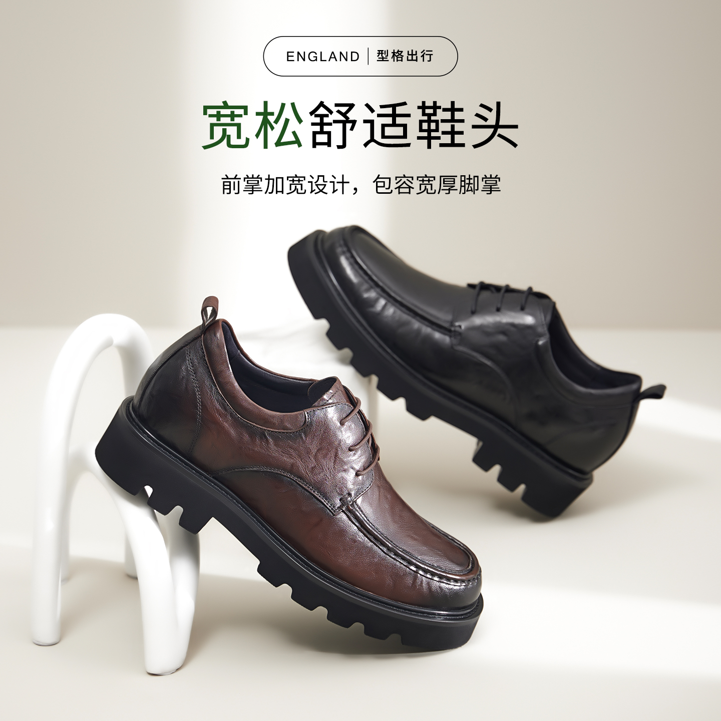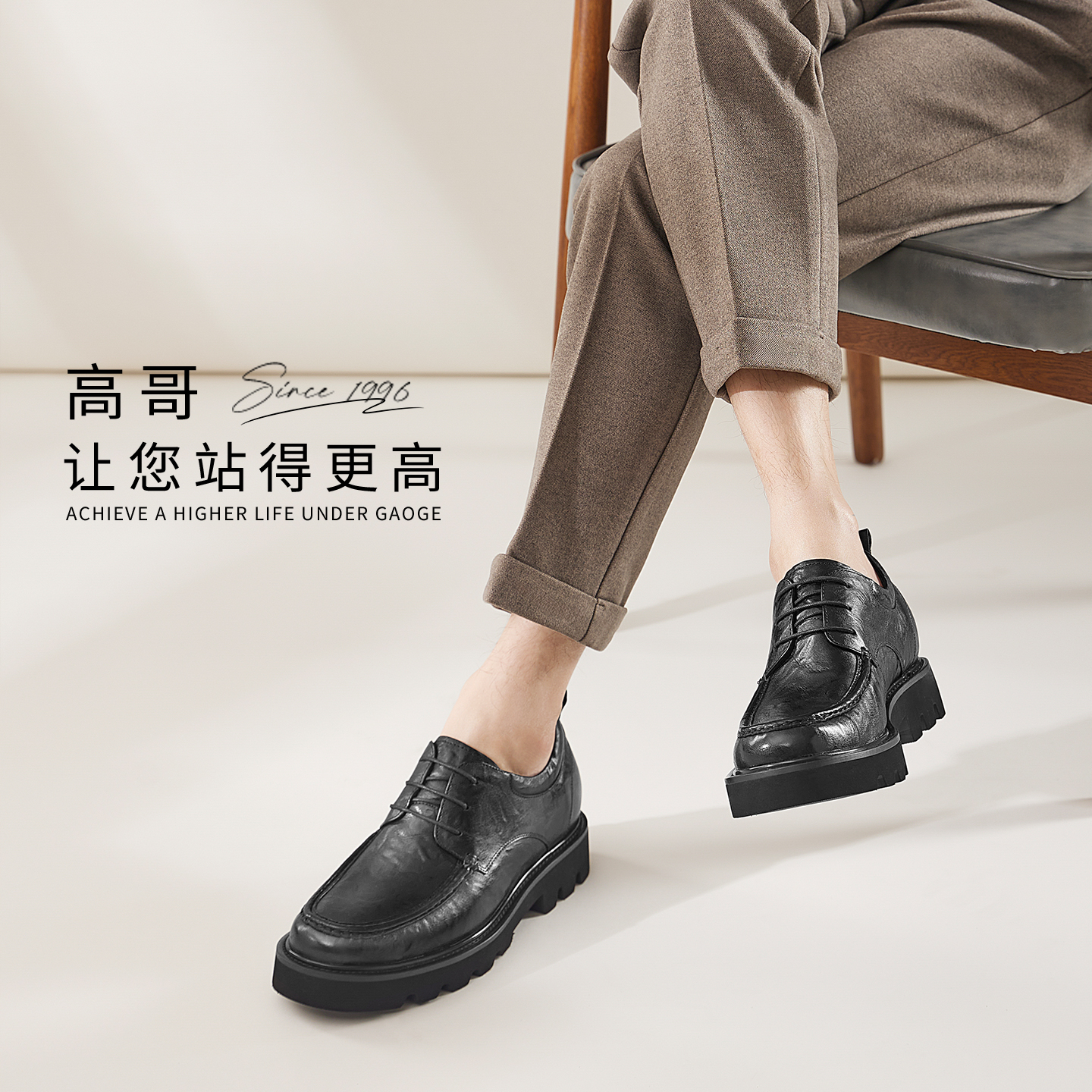 高哥男士增高鞋8cm擦色皮鞋男正装商务男鞋子轻便舒适厚底德比鞋 - 高哥增高鞋旗舰店