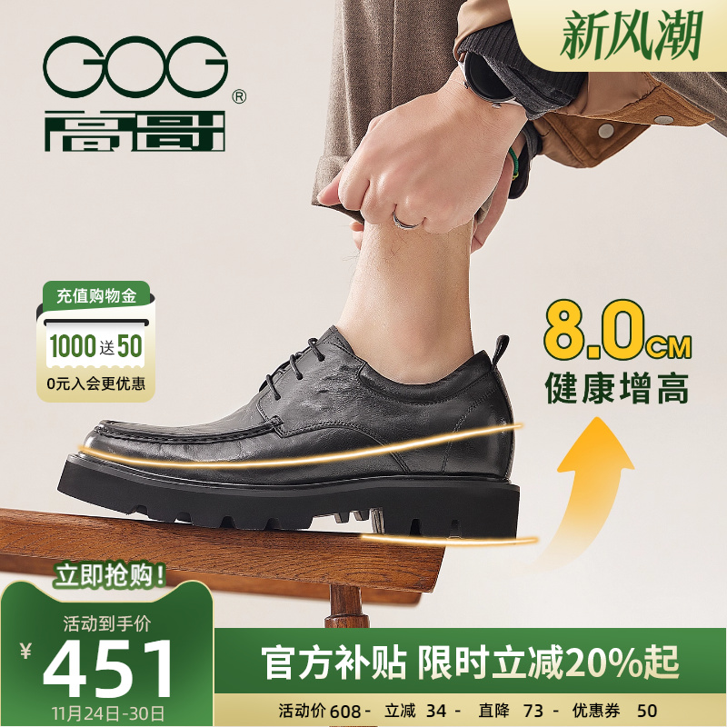 高哥男士增高鞋8cm擦色皮鞋男正装商务男鞋子轻便舒适厚底德比鞋