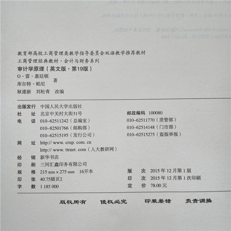 正版审计学原理 英文版第19版十九版  O·雷·惠廷顿  库尔特  Principles of Auditing&Other Assurance Services 人民大学出版社
