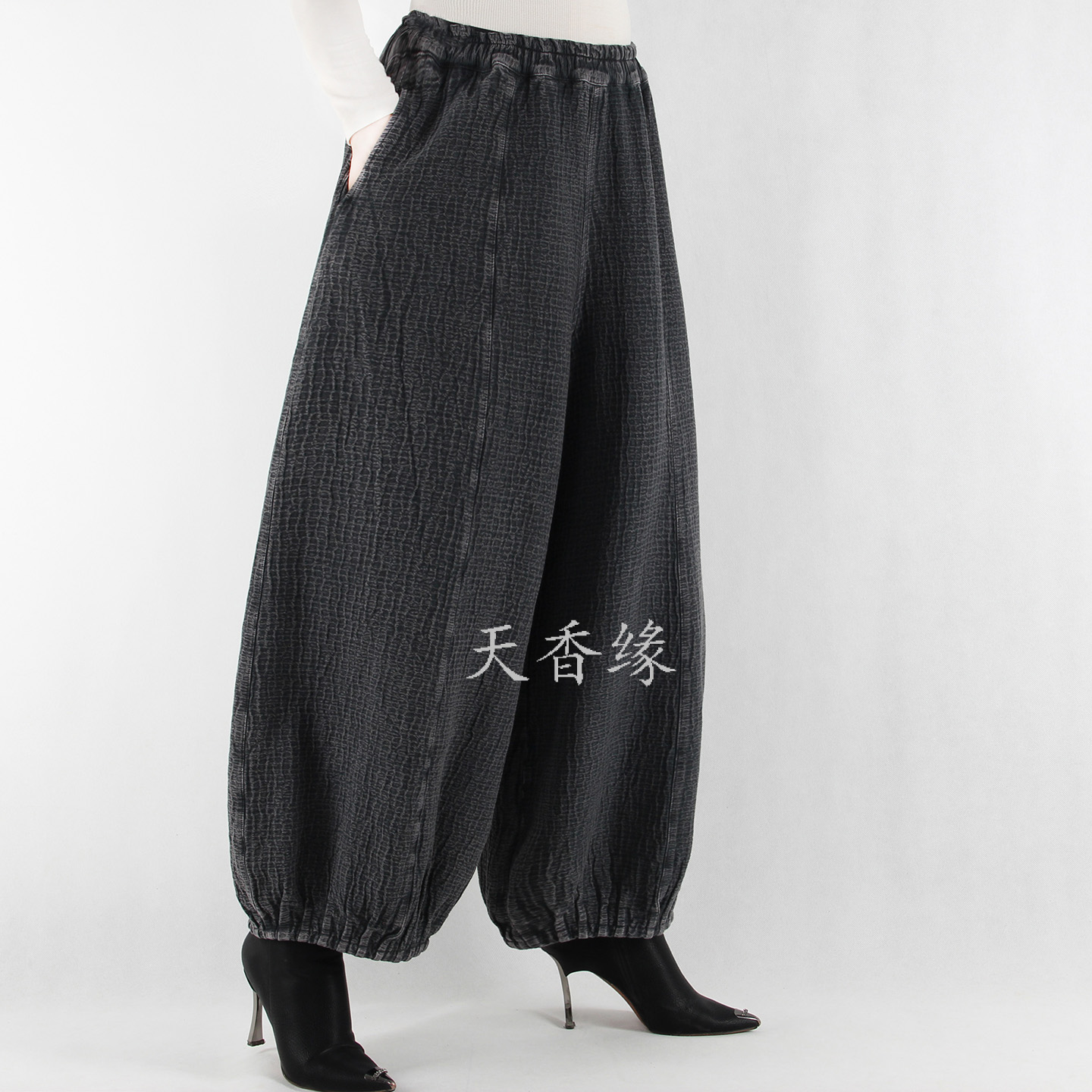 天香缘2025秋冬季高腰麻棉灯笼裤女时尚哈伦裤宽松萝卜裤舞裤4672 - 天香缘时尚精品服饰