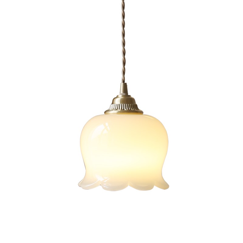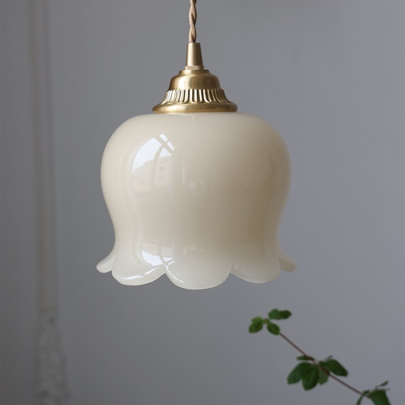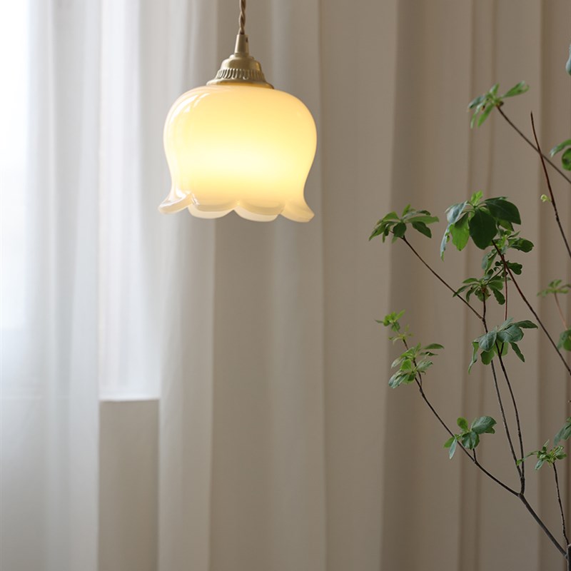 您的位置:他他商城  >   >  奶油风卧室灯浪漫花朵法式黄铜小吊灯暖色调树脂米黄X色铃兰花吊
