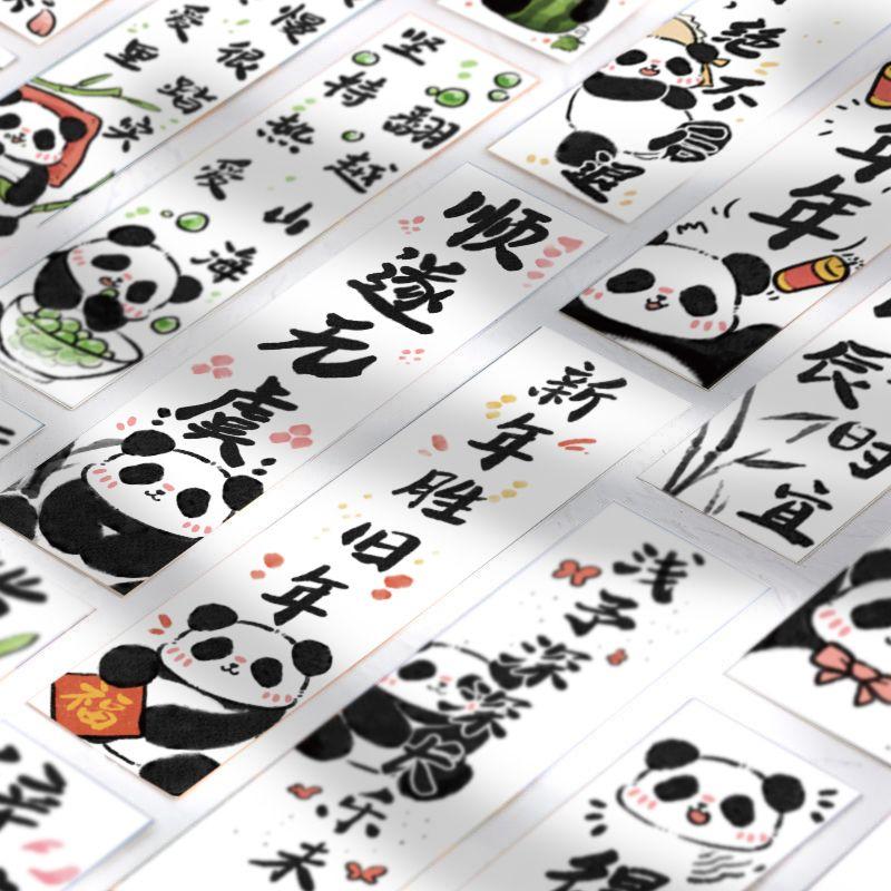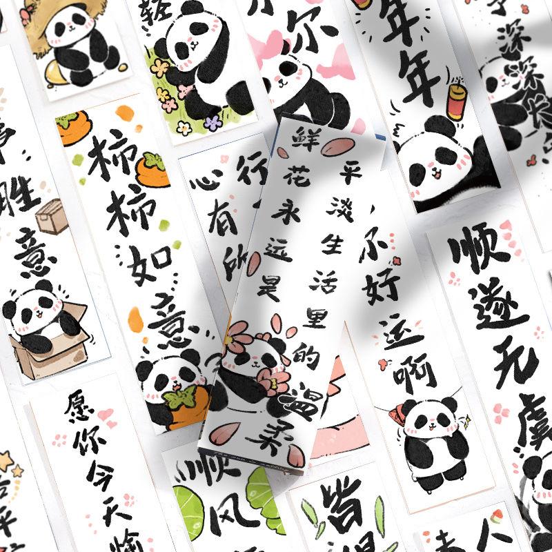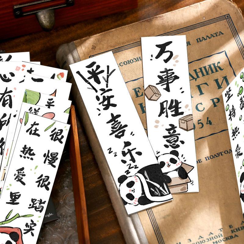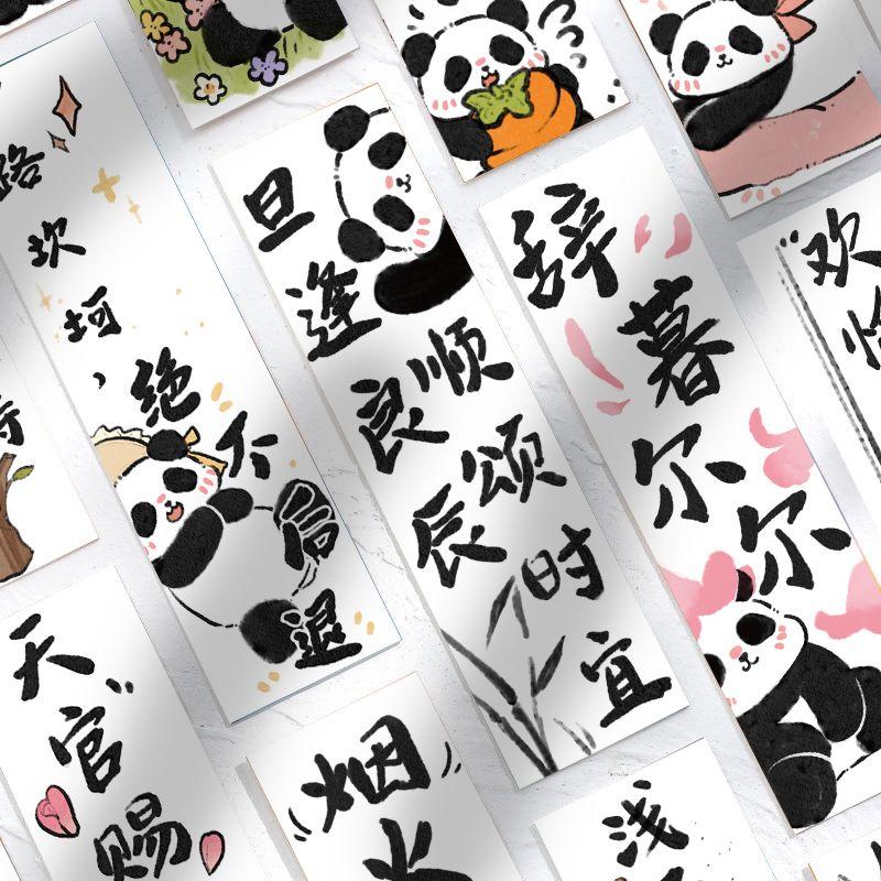 30张可爱卡通熊猫书签中国风创意书法文字阅读书页文艺复习书签贴 - 可爱泡泡文化