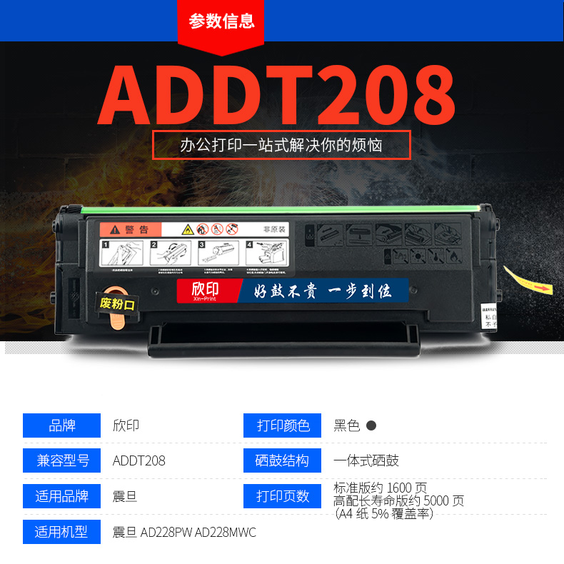 您的位置:他他商城  >   >  欣印适用震旦ADDT-208硒鼓易加粉ADDT208碳粉盒带芯片AURORA AD228PW激光黑白打印机墨盒粉仓AD228MWC墨粉盒