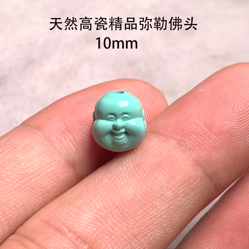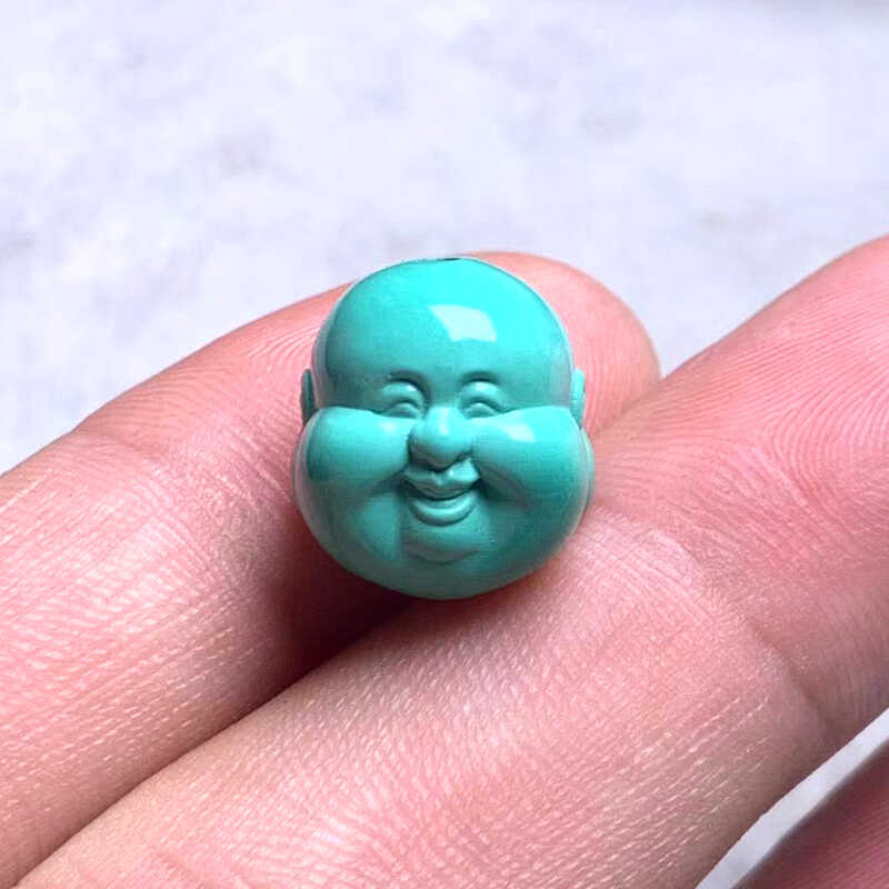 天然原矿高瓷绿松石弥勒佛头笑佛头背云珠子配珠文玩手串佛珠配饰 - 小语绿松