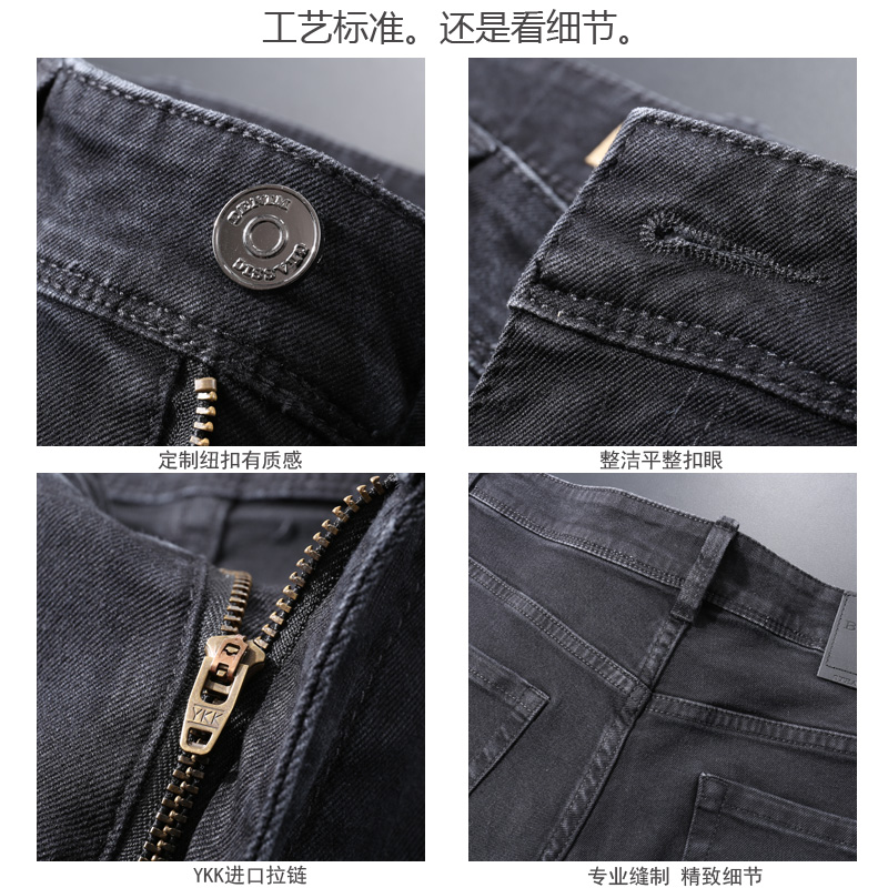 牛仔裤男直筒2024新款春秋季黑色质感原色酵素洗水商务休闲长裤子 - 梵默旗舰店