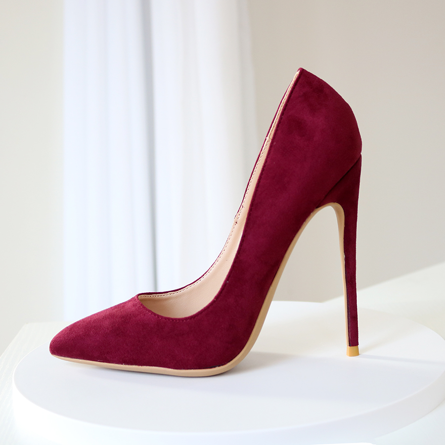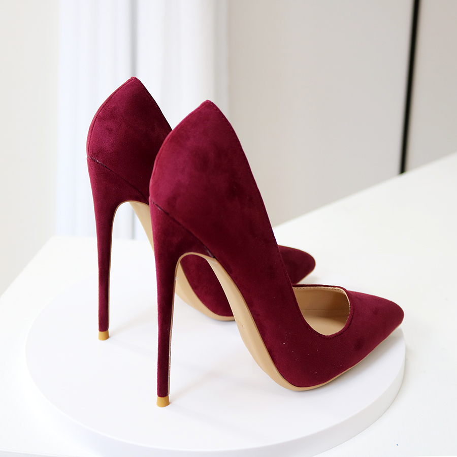 您的位置:他他商城  >  鞋子  >  酒红色绒面细跟尖头高跟鞋超浅口气质名媛法式小大码定制模特13CM
