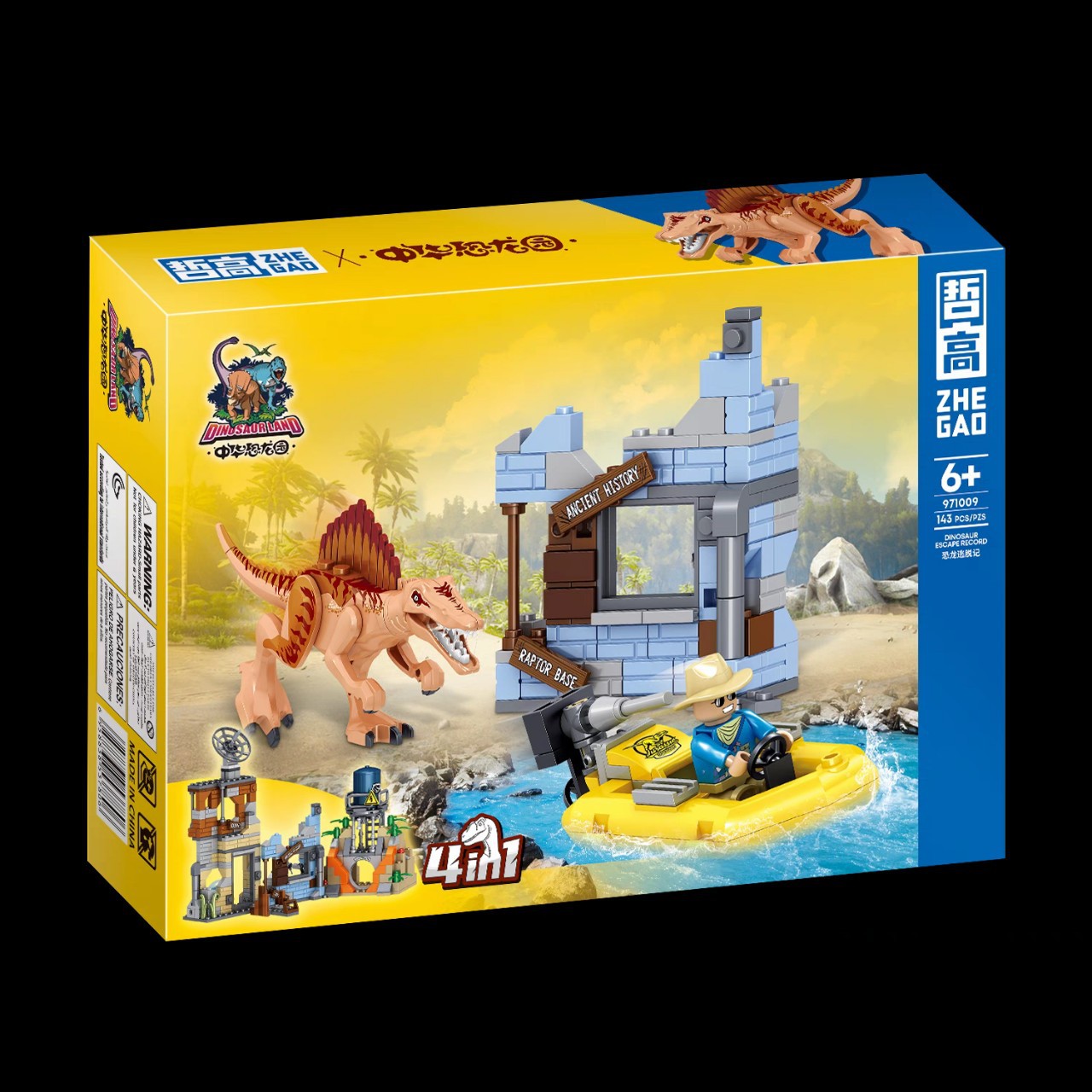 哲高971009恐龙侏罗纪霸王龙小颗粒拼装6岁男孩积木恐龙逃脱记 - 伴乐积木
