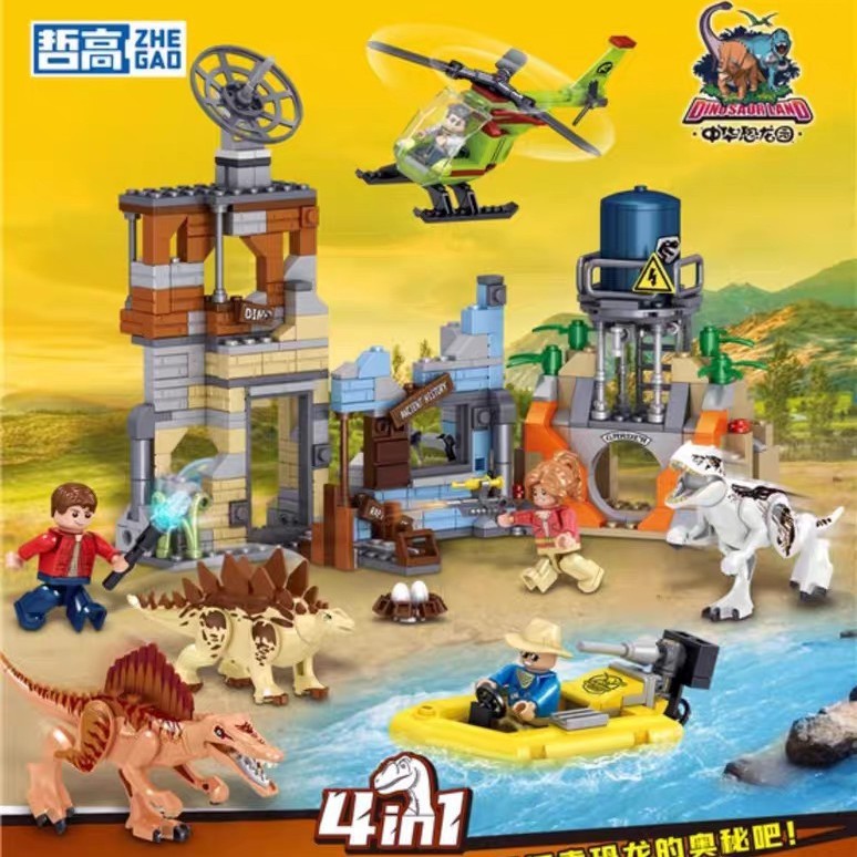 哲高971009恐龙侏罗纪霸王龙小颗粒拼装6岁男孩积木恐龙逃脱记
