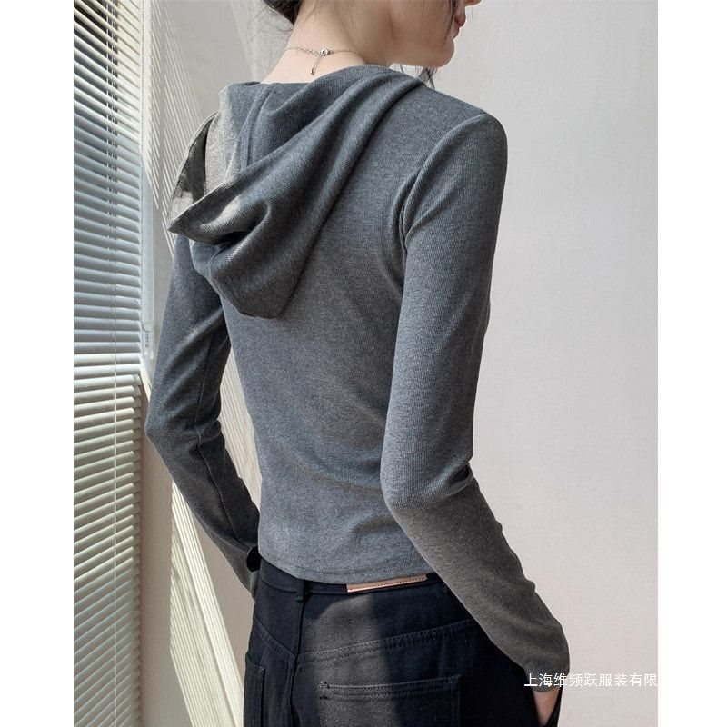 连帽长袖恤女2025秋冬新款设计感小众韩版半拉链内搭打底衫上衣 - 玲的开始