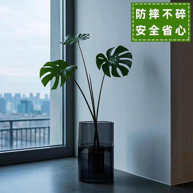 防摔大号龟背竹花瓶高款超高超大水培器皿落地特大号塑料仿玻璃