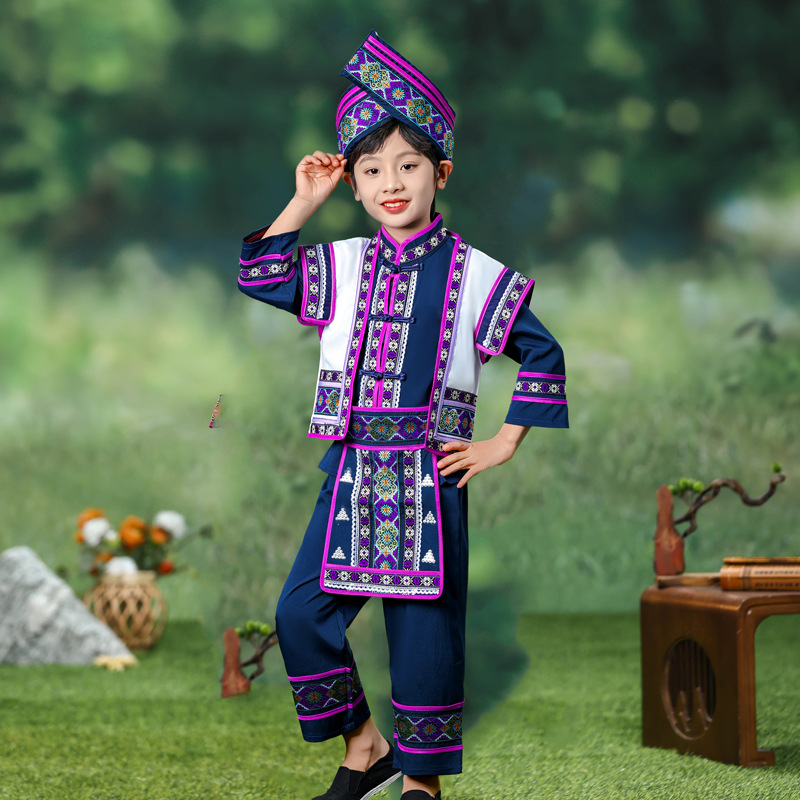 三月三壮族儿童男民族服装六一男童哈尼族苗族彝族瑶族舞蹈演出服 - 舞蹈表演服饰