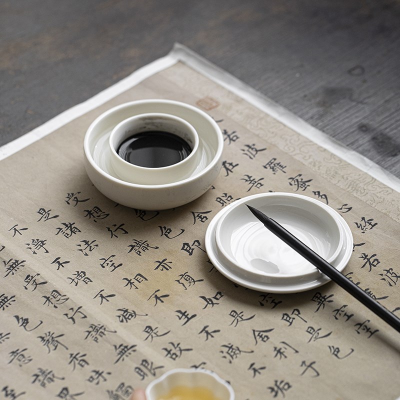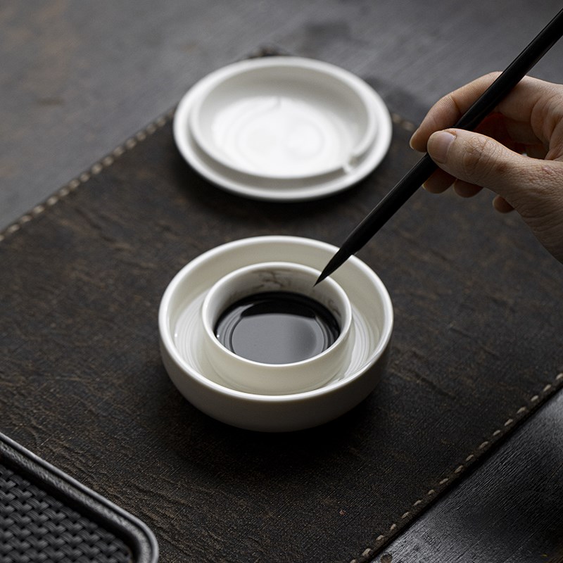 不干墨池火锅f砚多功能砚台陶瓷笔洗墨碟墨碗墨盒文房学生初学书 - tb56218574344