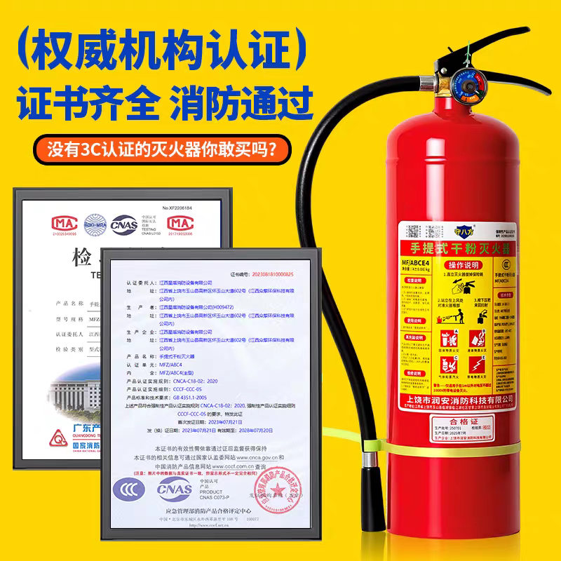 手提式干粉灭火器4公斤2/3/5/8kg车载家用商铺工厂专用灭火器 - 广州市安城消防器材店