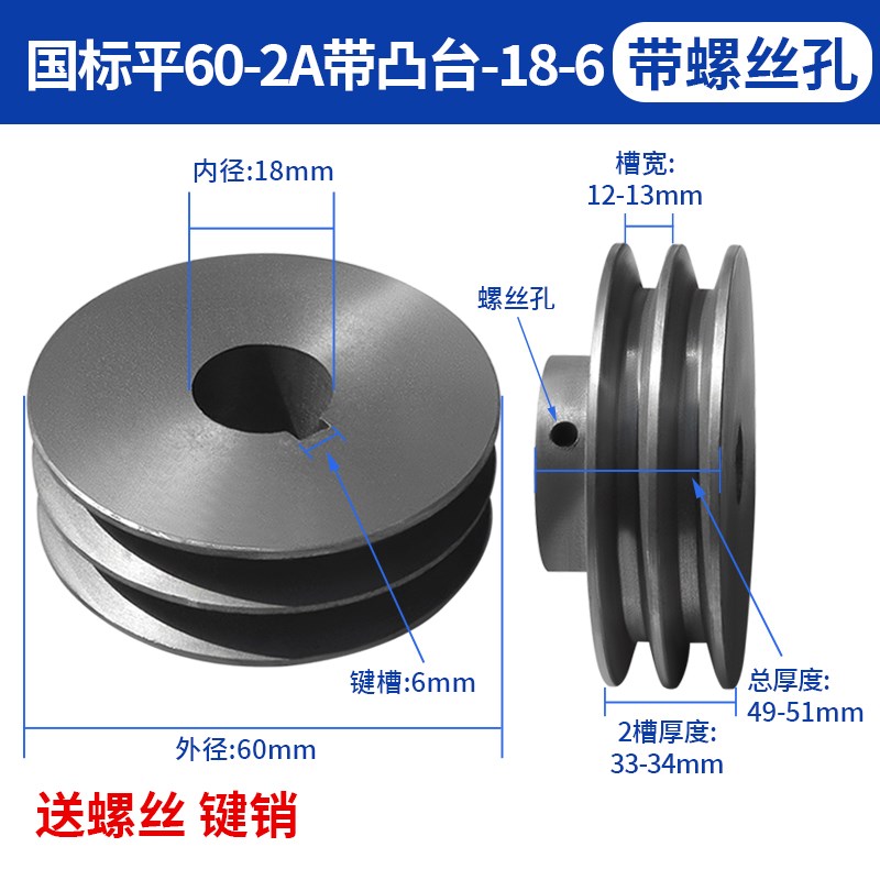 2A头平国标型皮带轮双槽带凸台减速发电L机马达传动轮铸铁皮带盘 - tb56964871509