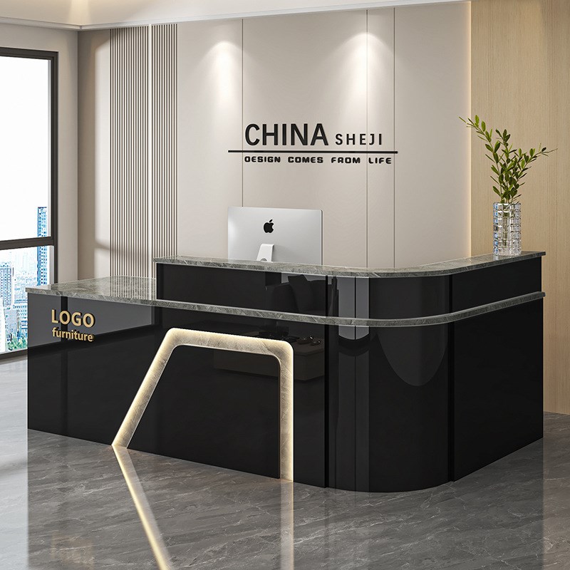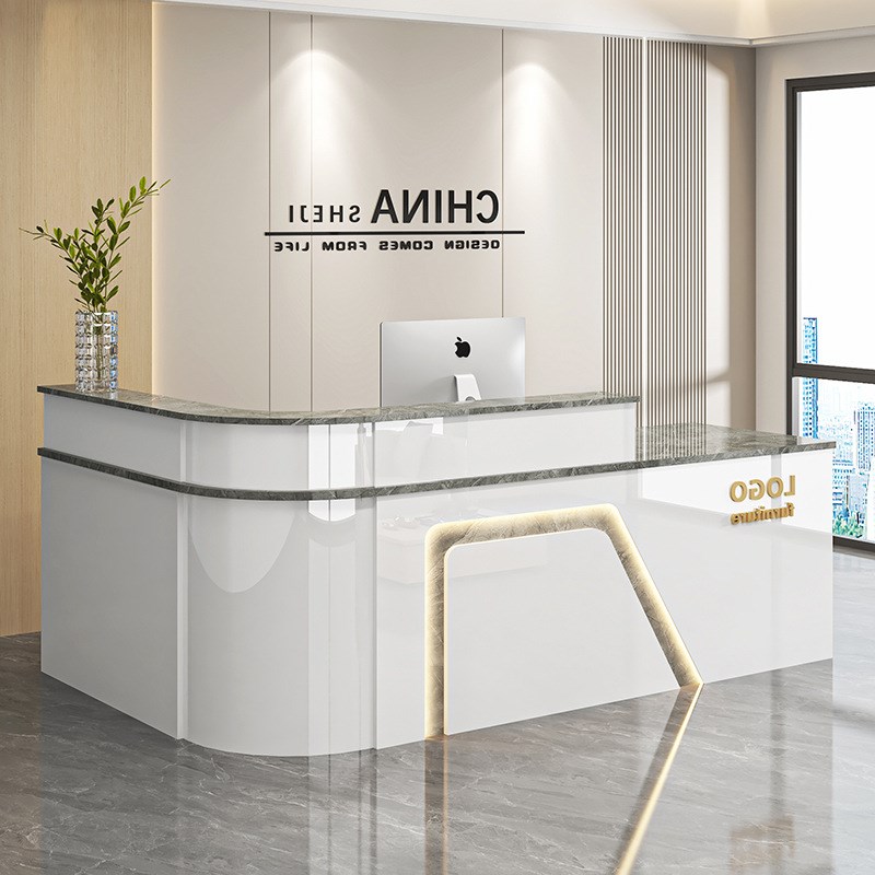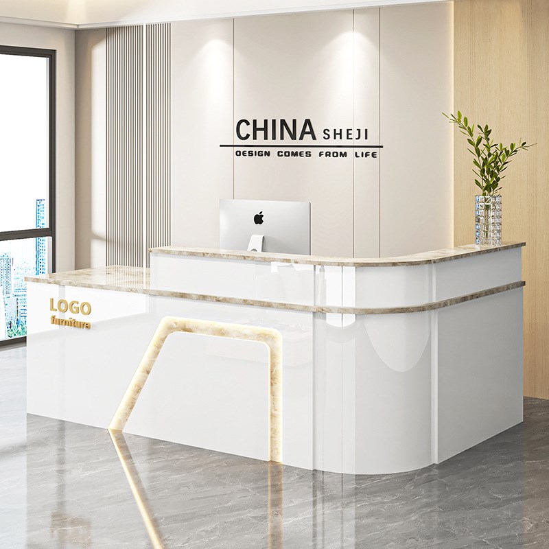 前台接待台弧形收银台商场酒店餐厅吧台转角烤漆亮光桌服务台 - 搁脸设计百货