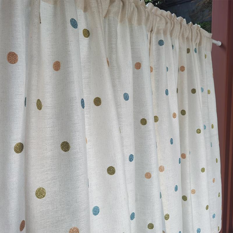 遮光厨房小窗帘半帘短帘隔断不透人门帘魔术贴遮挡帘日式亚麻圆点 - 慕华莎啖哔喉专卖店