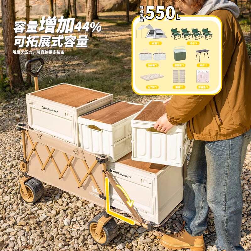 疆屿露营车野营推车户外折叠推车野餐摆摊拖车儿童可躺聚拢营地车 - 风华绝温
