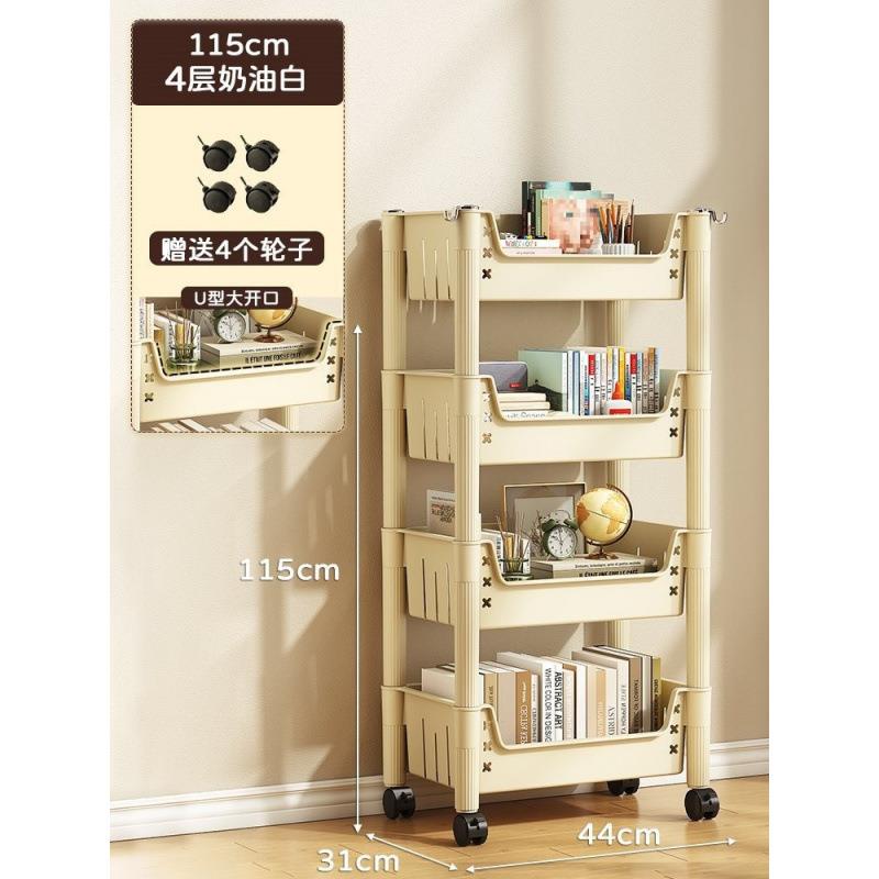 书架置物架落地家用简易多层带轮儿童玩具收纳移动推车书本收纳架 - 艺能百货店01