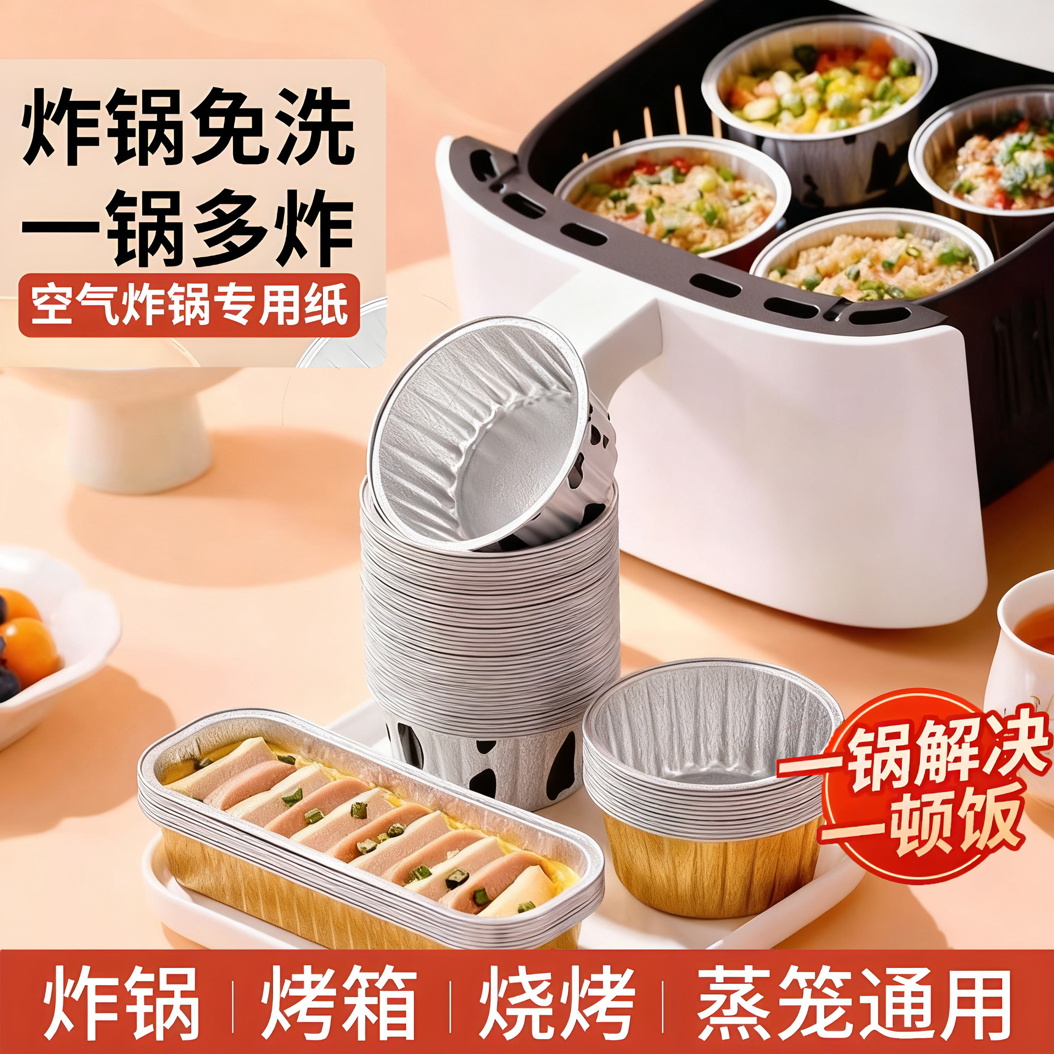 空气炸锅锡纸碗铝箔蛋糕烘焙模具可重复家用烤箱蛋糕布丁模具杯盘 - 小鹿家生活馆