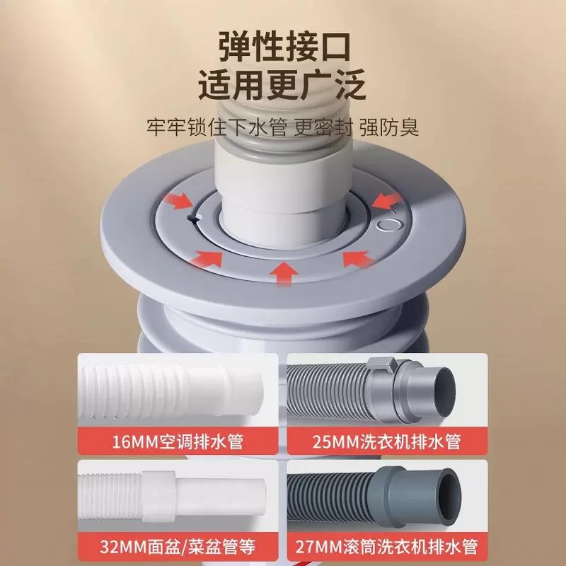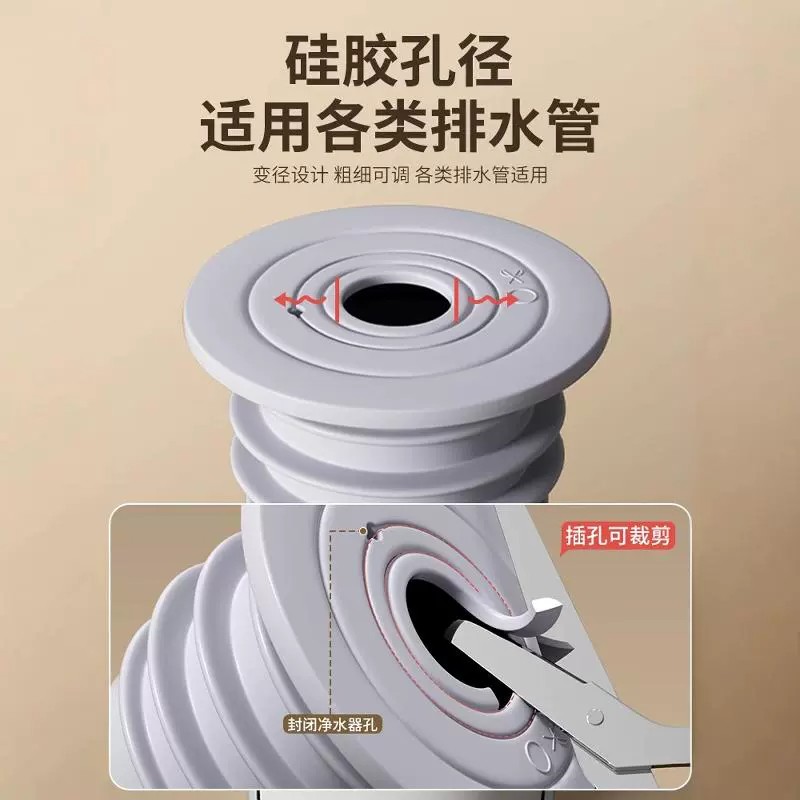 厨房下水管密封塞洗衣机排水管道5075封口盖硅胶圈防返臭堵口神器 - 公路港特卖百货