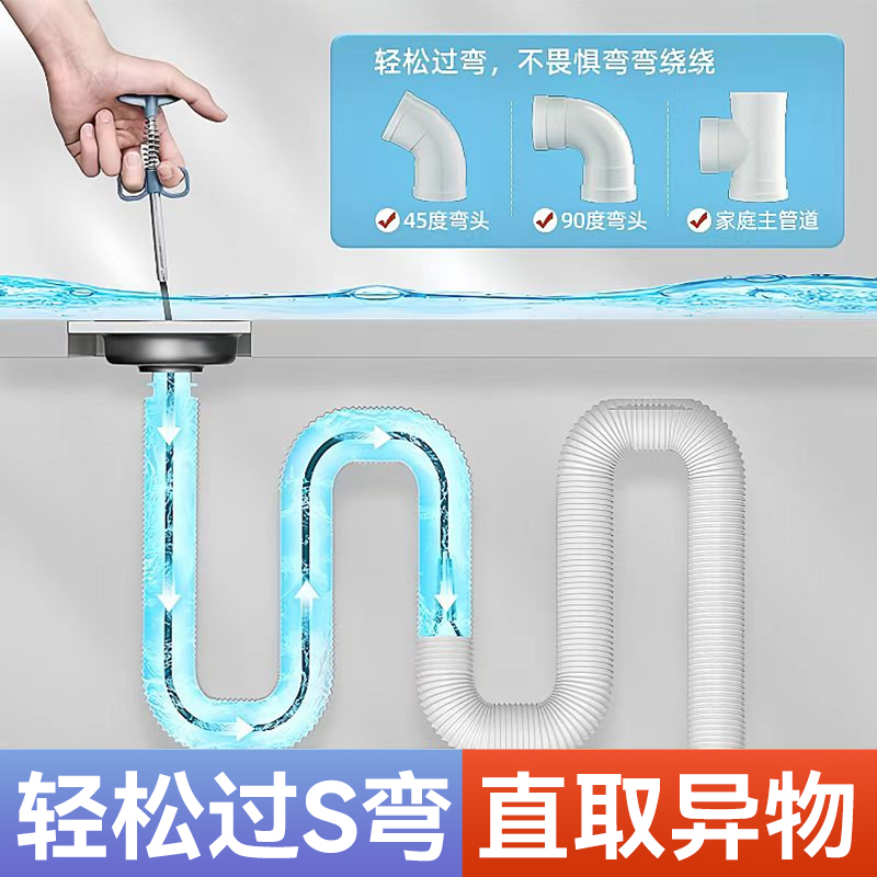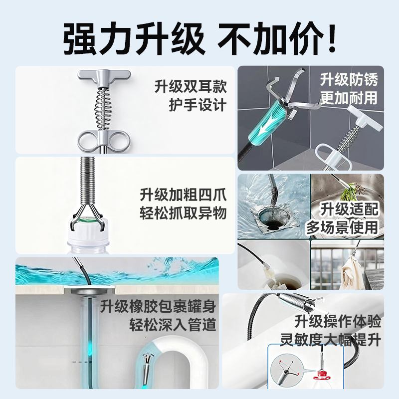 2025新款不锈钢四爪管道疏通器厨房厕所管道堵塞家用清洁专用工具 - 牧洁居家日用旗舰店