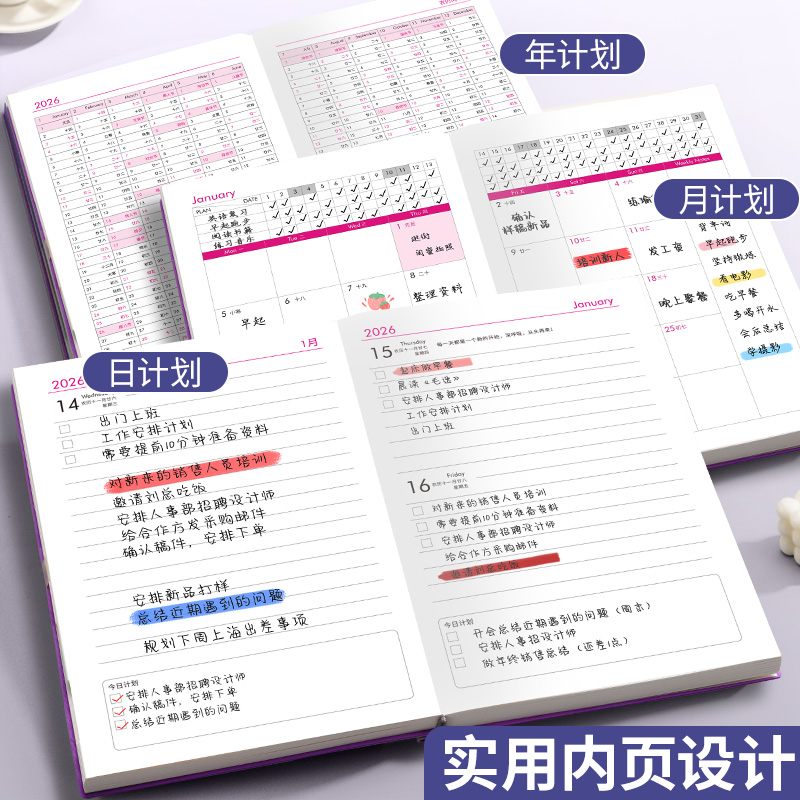 您的位置:他他商城  >   >  日程本2026年新款计划本表效率手册每日计划本todolist时间管理365天日历记事本学习工作笔记本子礼盒定制
