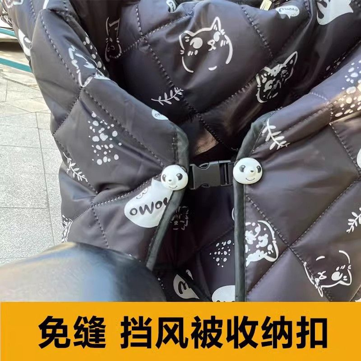电动车小熊扣挡风被固定插扣可拆卸调节挡风被收纳防雨淋四季通用