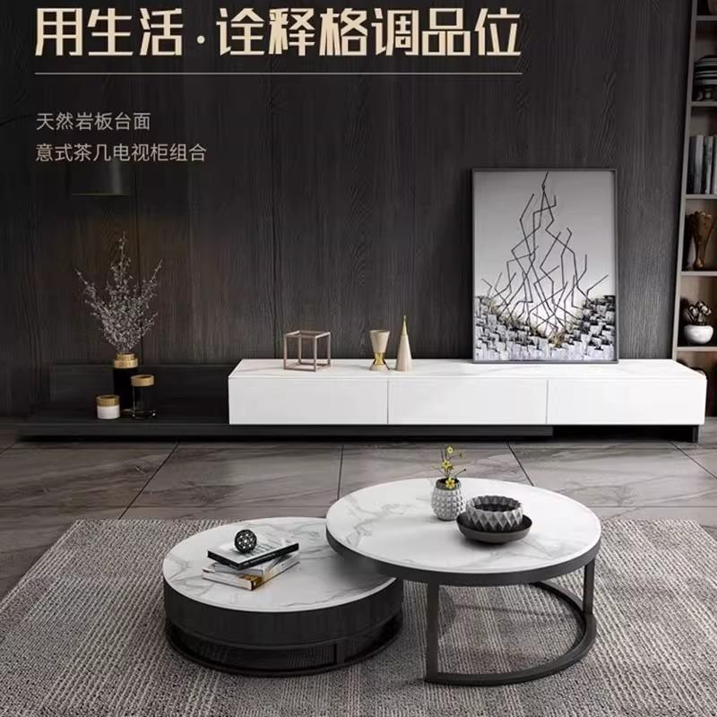您的位置:他他商城  >   >  轻奢岩板圆形茶几现代简约小户型客厅组合茶几电视柜组合