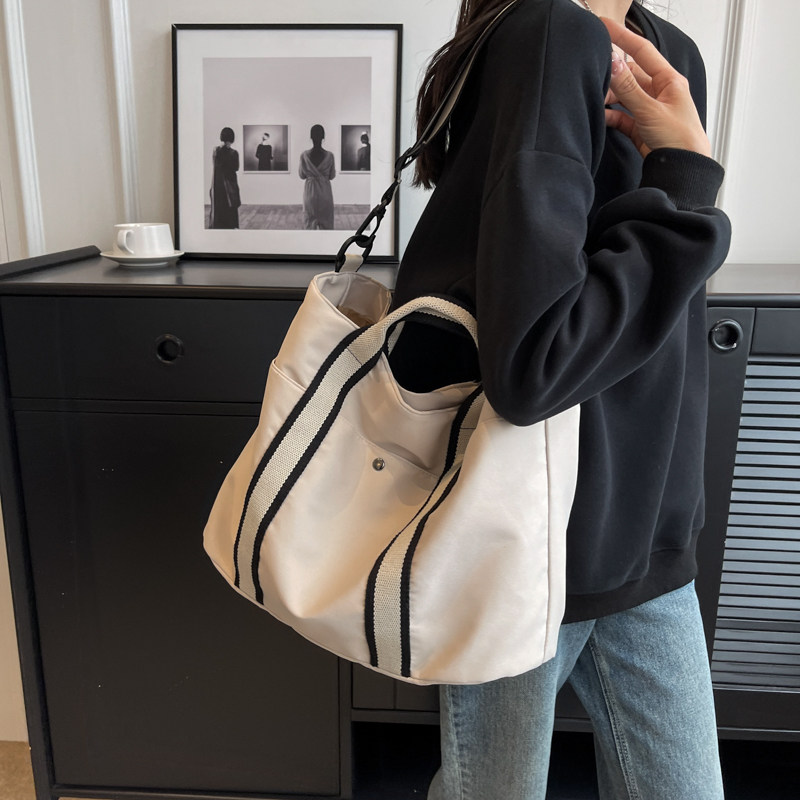 轻便防水尼龙布袋单肩包女大容量托特包手提通勤包短途行李袋健身 - 韩国原创布袋诗尼店