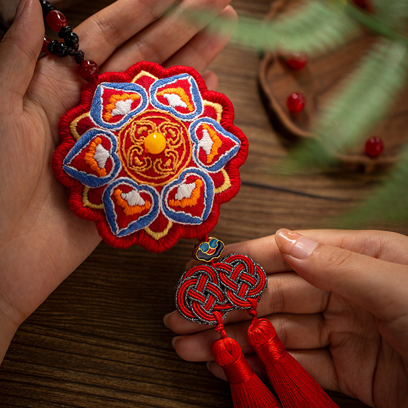 敦煌香囊车挂件刺绣手工diy材料十字绣车载挂饰平安符送男友礼物 - 苏小苏手作