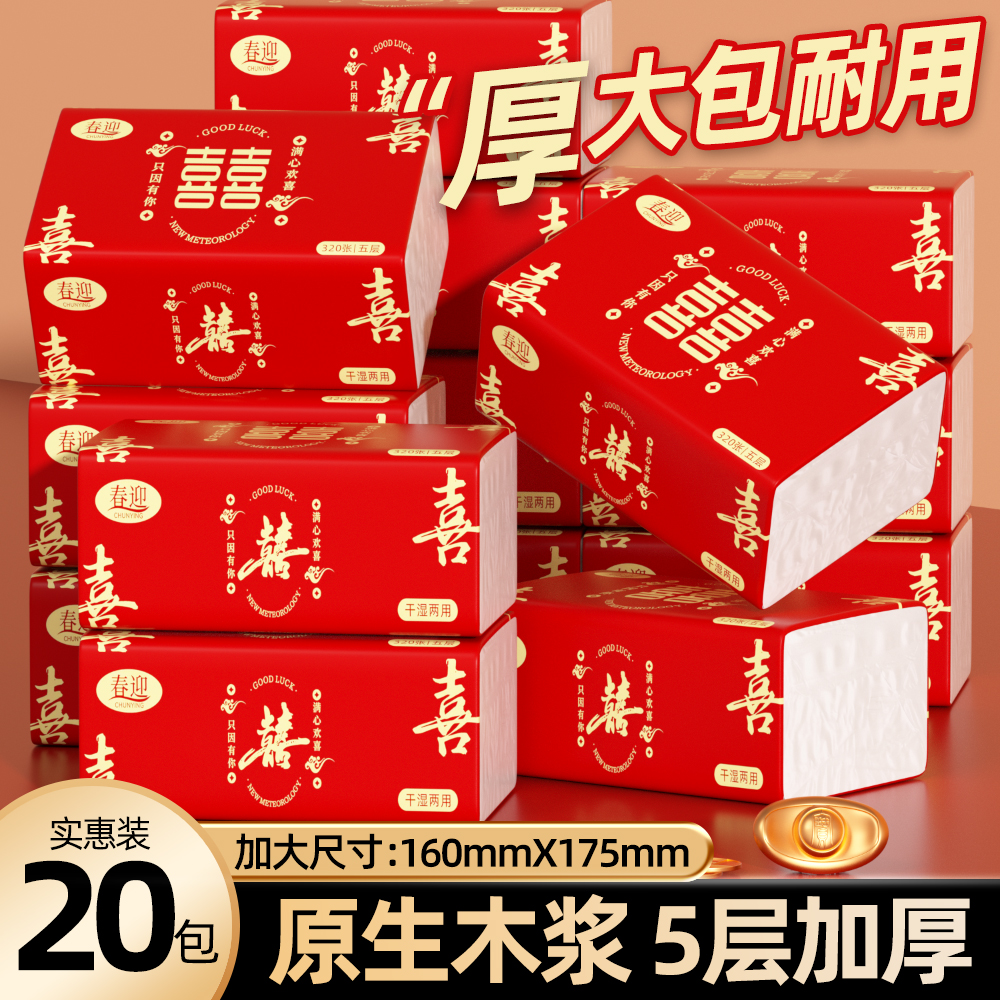 纸巾结婚专用抽纸大包婚庆用品全婚宴专用餐巾纸酒席整箱婚礼喜宴 - 喜结良缘婚庆用品企业店