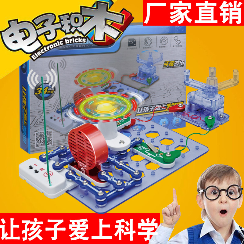电学小子电子积木百拼儿童益智电路拼装玩具物理实验手摇发电机