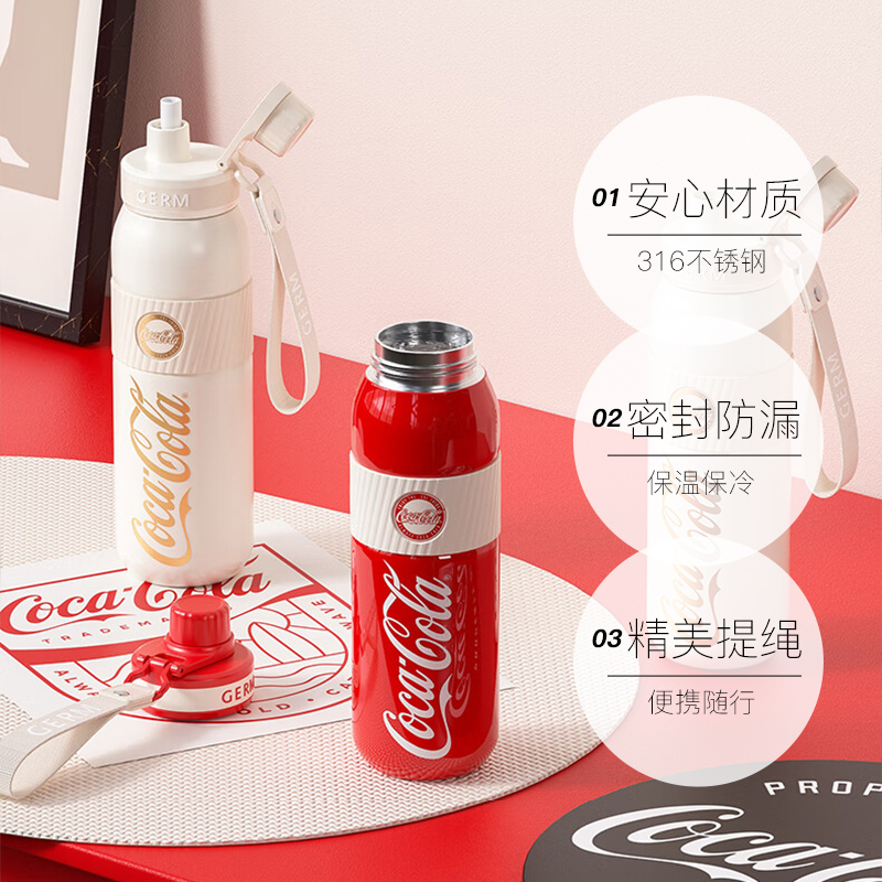 格米GERM潘展乐可口可乐保温杯女水杯男水壶学生上学儿童吸管杯子 - 万颐家居专营店