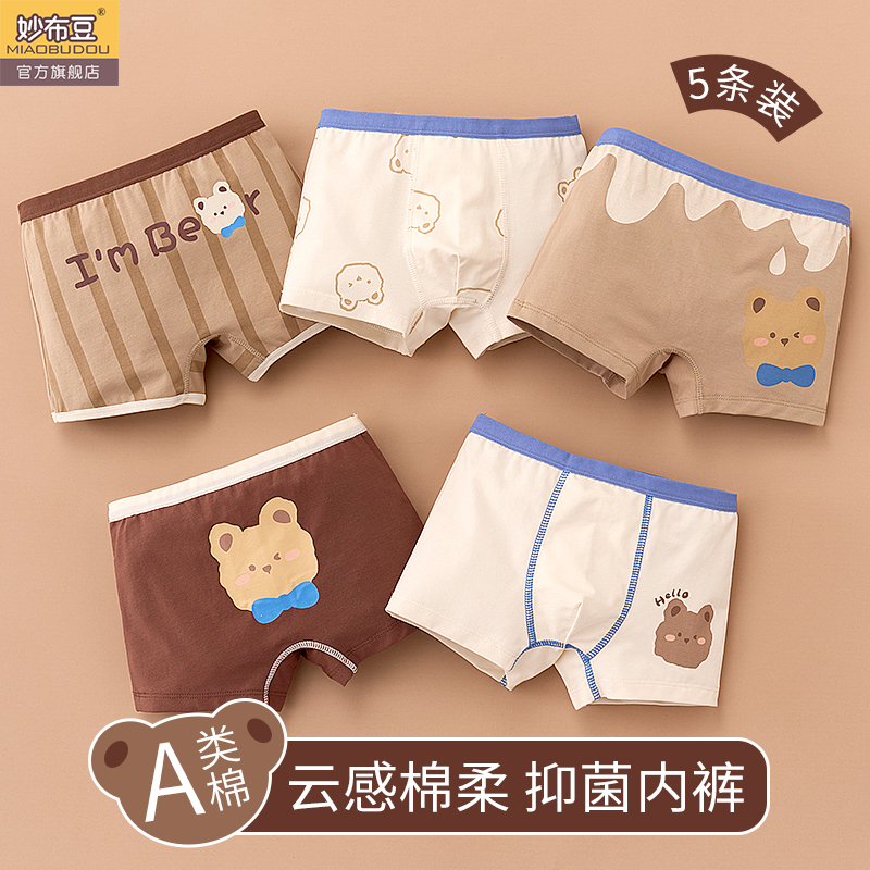儿童内裤男童四角裤纯棉男宝宝大童短裤男孩抗菌档小童全棉平角裤 - 妙布豆旗舰店