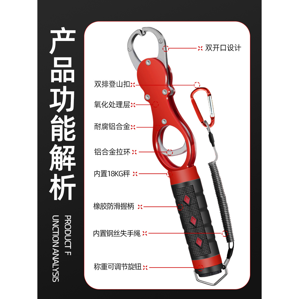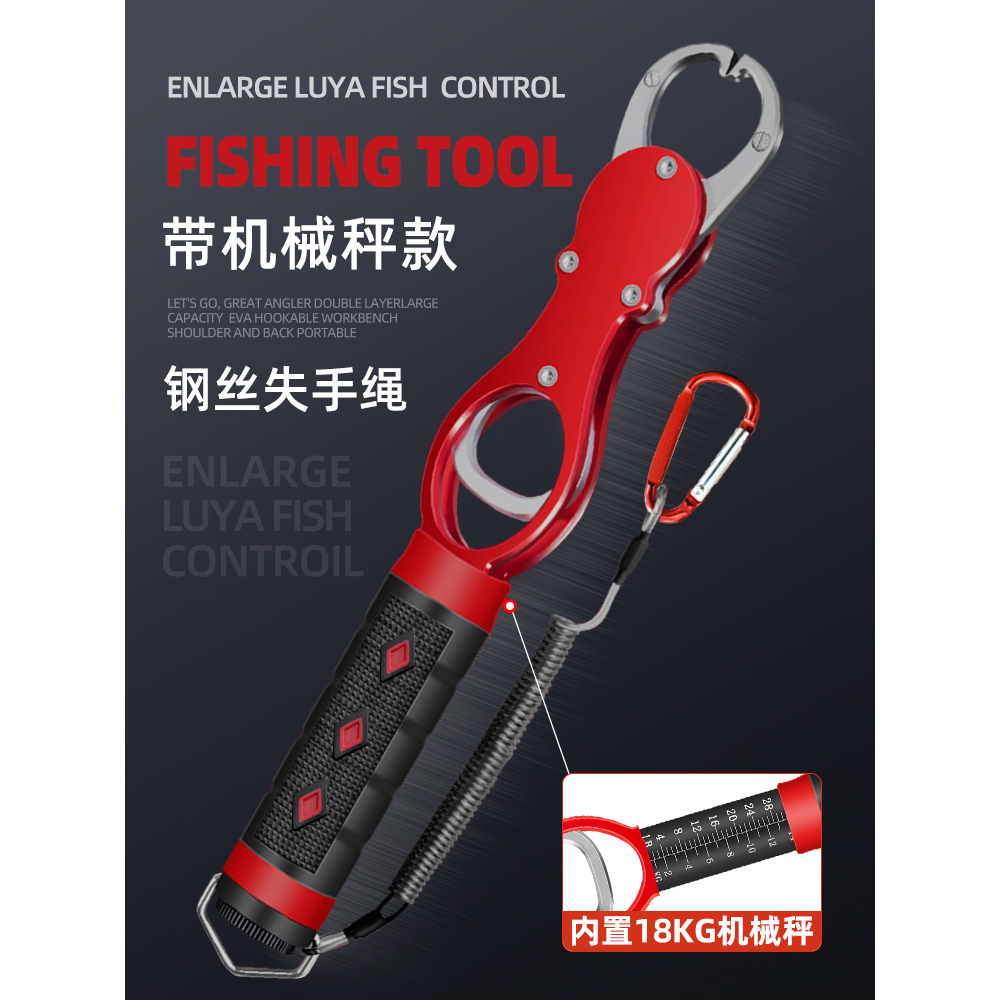五泡多功能路亚钳长柄铝合金带秤加长控鱼器夹鱼器开环剪刀绑钳子 - 五泡飞德渔具
