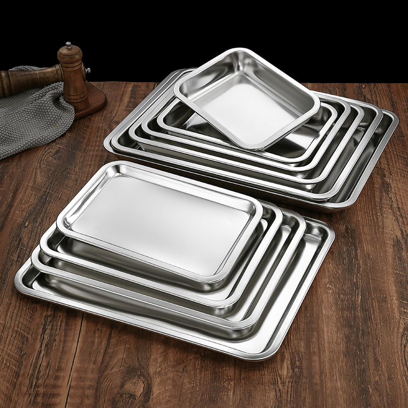 304不锈钢方盘加厚长方形托盘 商用烧烤盘蒸盘烤鱼盘菜盘平底盘子 - 源景餐厨具