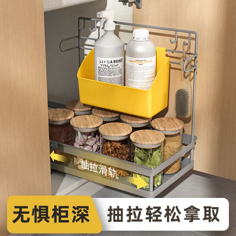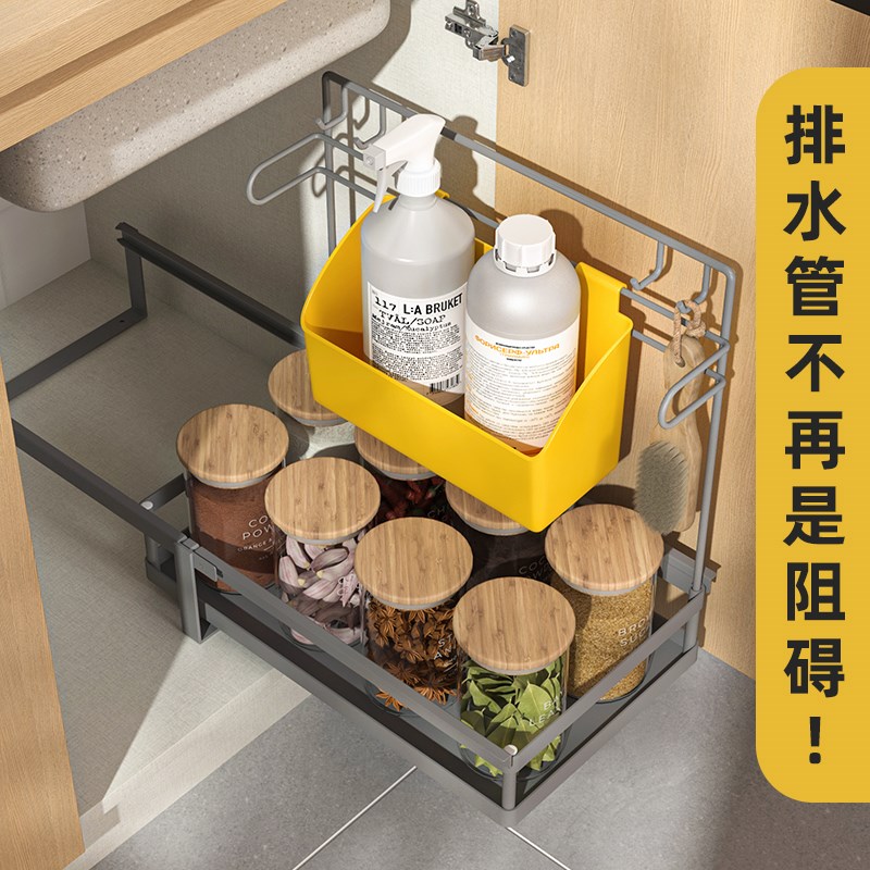 抽拉式置物架橱柜内分层架厨房下水槽柜碗碟调料收纳盒Z抽屉式拉 - 清欢阁甄选店的小店50