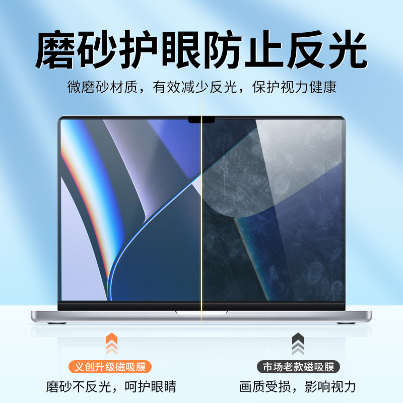 【磁吸式】macbookpro苹果笔记本磁吸屏幕膜2023款m2免贴air13防蓝光13.6/14/16防辐射m1护眼电脑13.3防反光 - 义创数码配件专营店