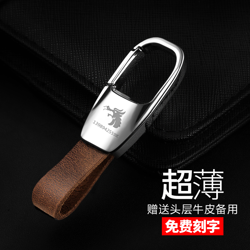 汽车钥匙扣男士挂件真皮高级感钥匙链腰挂扣环挂饰防丢锁匙扣刻字 - 领狼狮旗舰店