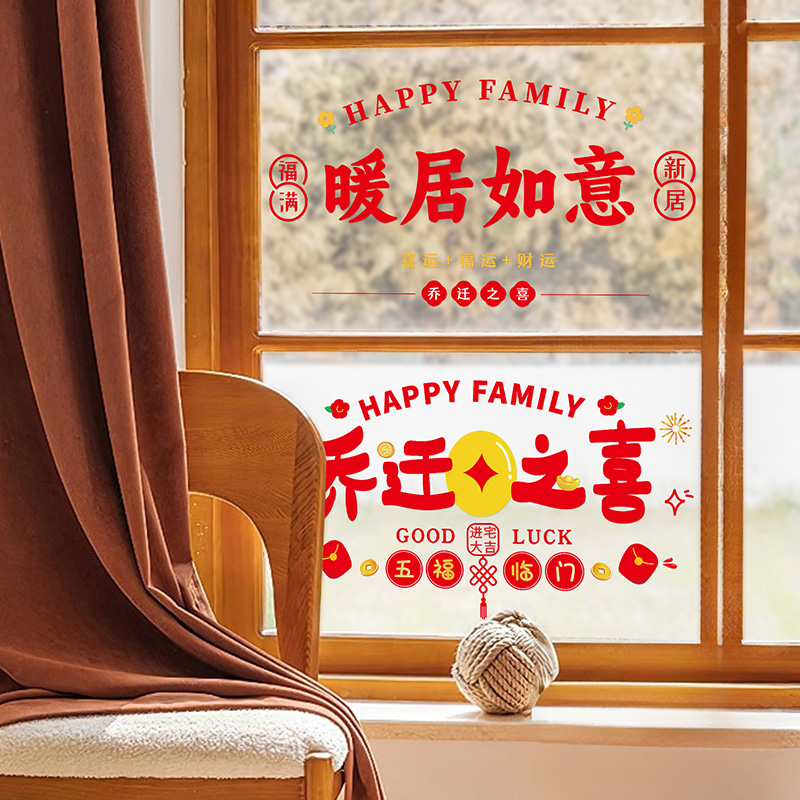 乔迁之喜装饰窗花静电贴玻璃贴搬家新居入宅门贴剪纸布置仪式用品 - 千棵树家居旗舰店