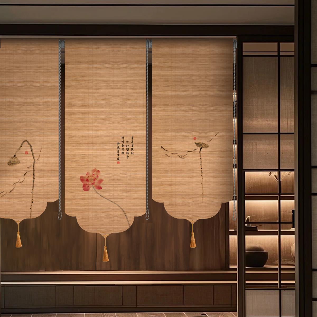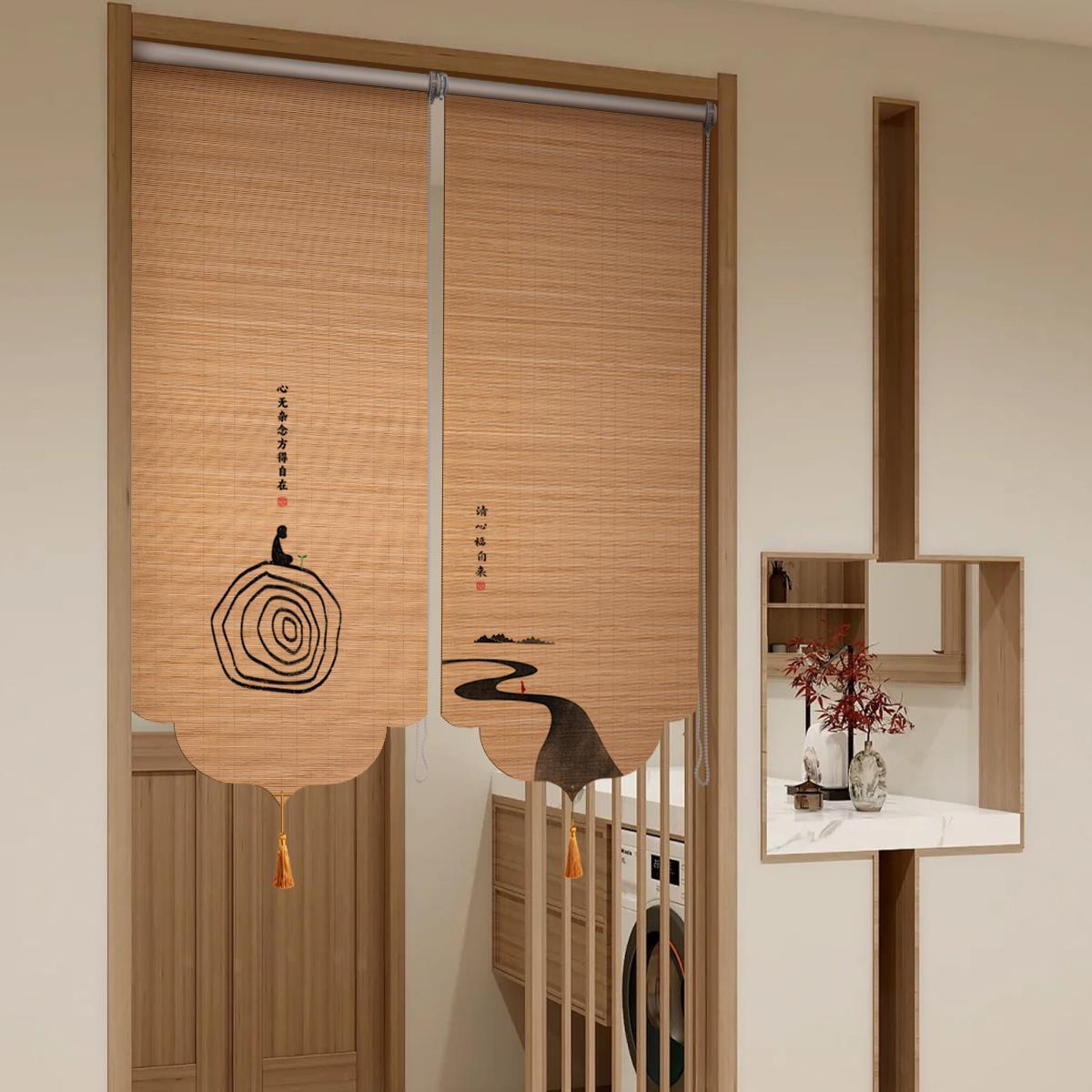 竹帘卷帘卷拉式中式门帘隔断帘客厅过道入户门装饰半帘屏风遮挡帘 - 爱美购tp企业店